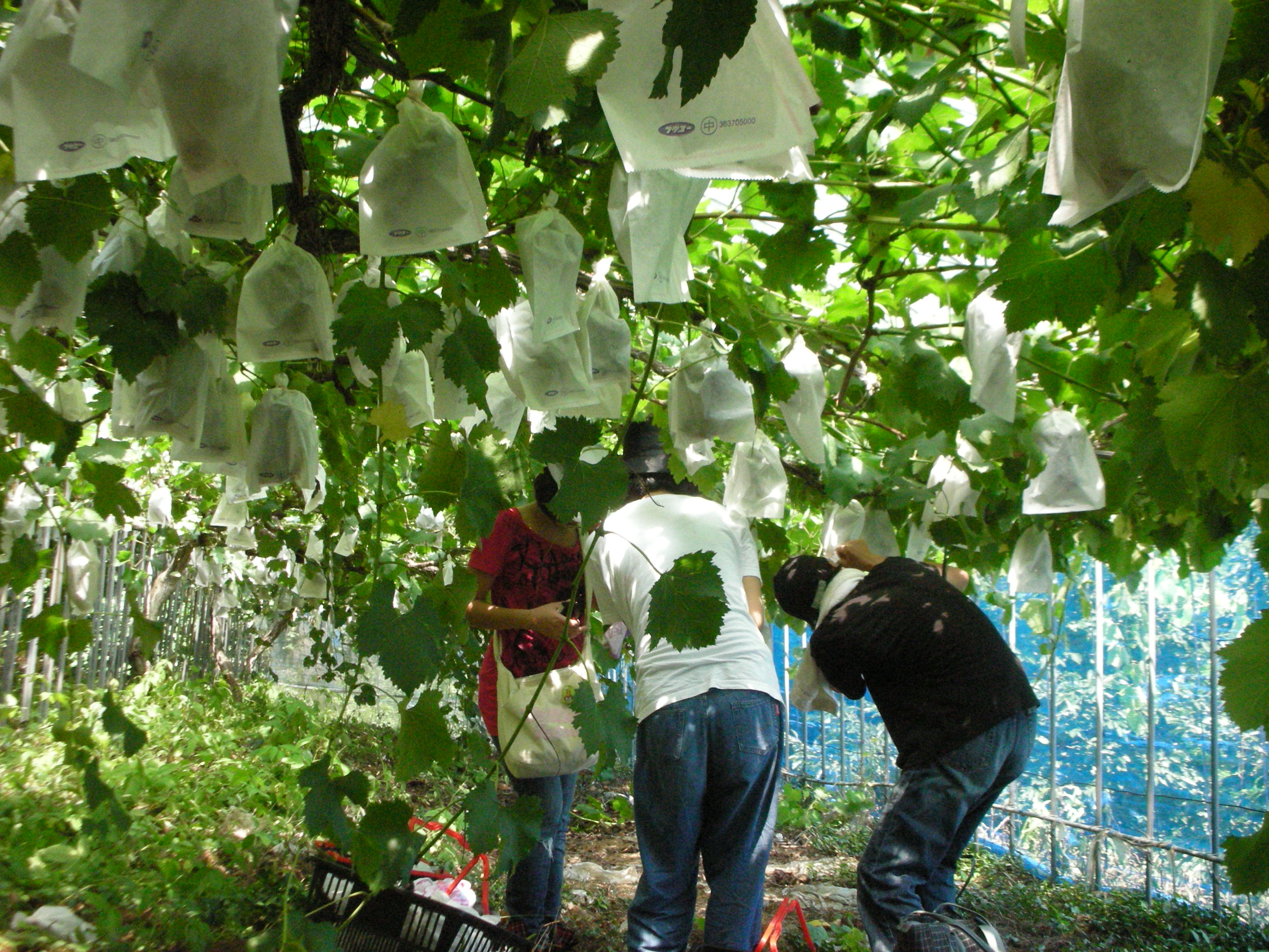 夏の暑い日でしたが、みんなぶどうの木の陰でせっせと収穫をしました。