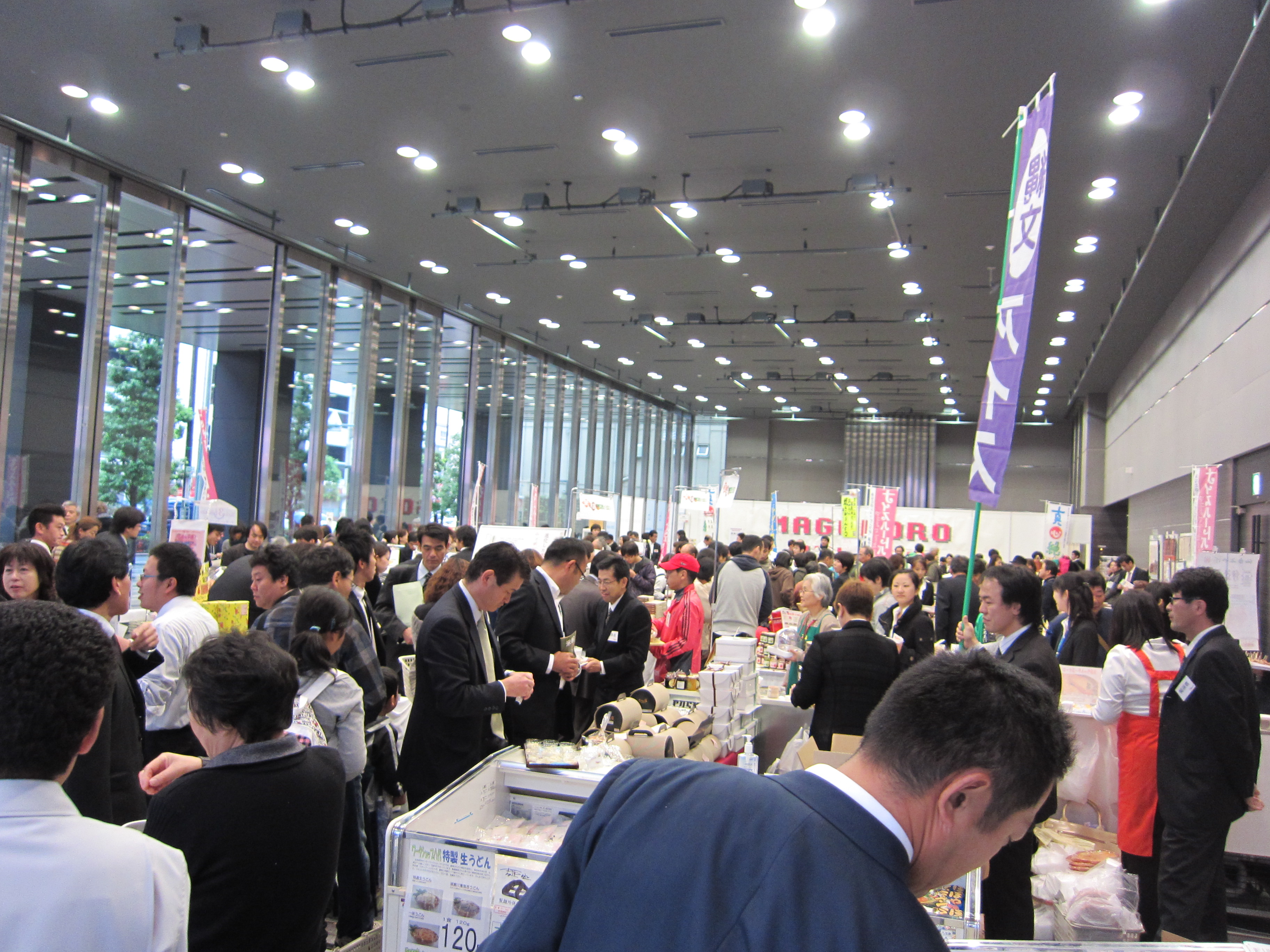 1階のイベント広場では、試食・販売会が行われ多くの人で会場はごった返していました。